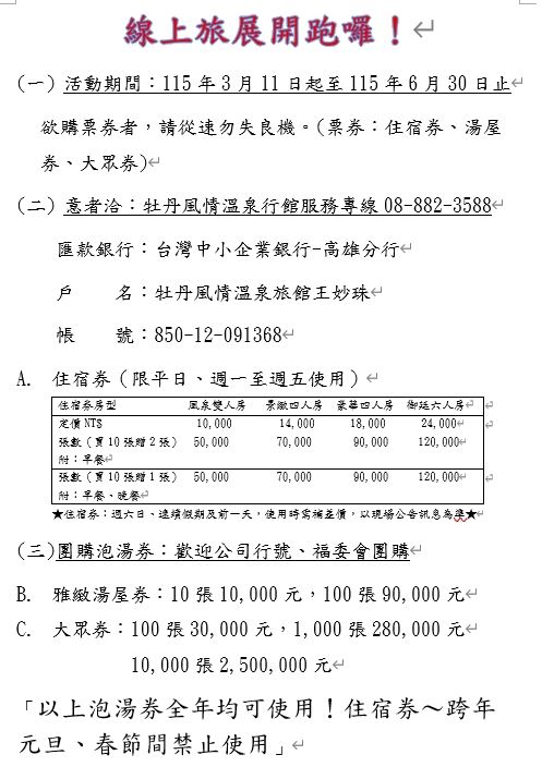 115年線上旅展開始搶購囉(住宿券、湯屋券、大眾券)